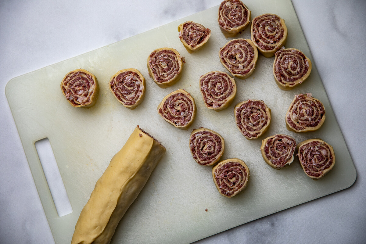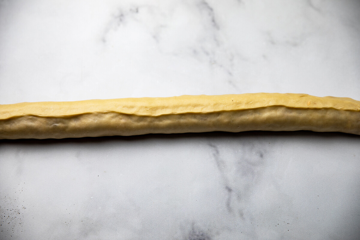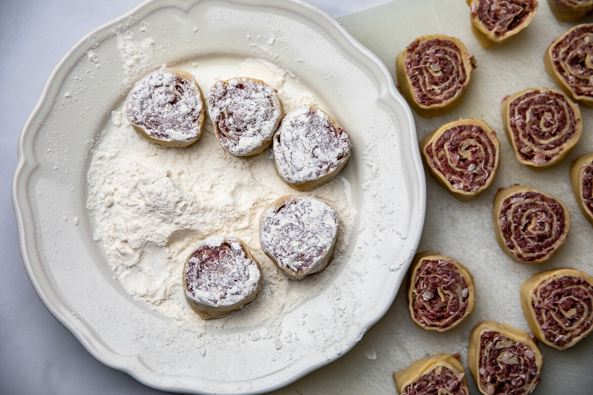 Юлия Мулино Разточете тестото на правоъгълен слой с дебелина 1,5 мм.
