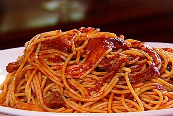 Спагетите са различен наш постоянен избор за такива случаи. Най-добре е да си имаш подготвен сос, а не да го готвиш в допълнение. Общо взето, вариш спагетите, загряваш готовия сос и смесваш. Толкова.