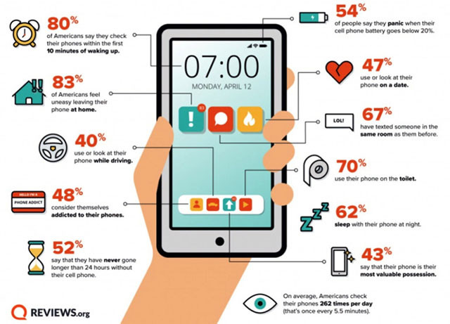 Ако някой ни бе споделил преди 30 години, че в близко бъдеще телефонът ще е трансформира в прозорец към приятелите ни и света, средство за извършване на покупки, мощна камера, портативна подпора и така нататък, най-вероятно нямаше да повярваме. Факт е обаче, че през 2021 година, с помощта на многото си приложения, мобилният телефон е в самобитно продължение на нас самите до степен, която съгласно мнозина граничи с пристрастяването. За да ревизират тъкмо какъв брой сме закачени за смарт телефоните си, хората от платформата за изследвания Reviews.org организират проучване с 1000 пълнолетни американци, което за следващ път ни демонстрира, че връзката ни с технологиите може би не е толкоз здравословна. Резултатите сочат, че средностатистическият американец поглежда телефона си приблизително по 262 дневно или един път на всеки пет и половина минути, и прекарва с него по три часа и 20 минути. Това си е съвсем половин работен ден, само че по-притеснителното е, че 80% от хората протягат ръка към телефона си още в първите 10 минути след ставане заран. Малко над половината интервюирани споделят, че в никакъв случай не са прекарвали повече от 24 часа без достъп до телефона си, а малко под половината от тях смятат телефона си за най-ценното си владеене. 83% от потребителите изпитват тревога, в случай че оставят смарт телефона си вкъщи, а 54% усещат признаци на суматоха, когато получат уведомление, че в батерията са останали единствено 20% заряд. 70% от интервюираните взимат телефона си в тоалетната, а 62% от тях го взимат и в леглото.