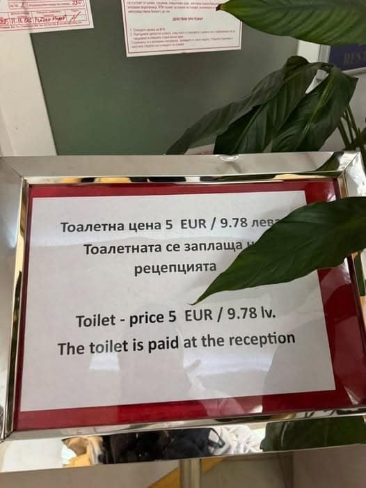 Ако попаднете на автогарата в София и псувате наред, тъй като би трябвало да се бръкнете с 2 лева за тоалетна, то се радвайте, че не сте в Боровец. Една фотография, която се завъртя във фейсбук, безусловно взриви мрежата. Оказа се, че в перлата на Рила - курорта Боровец, таксата за WC е скочила до галактическата цена от 5 евро (или 9,78 лева.).