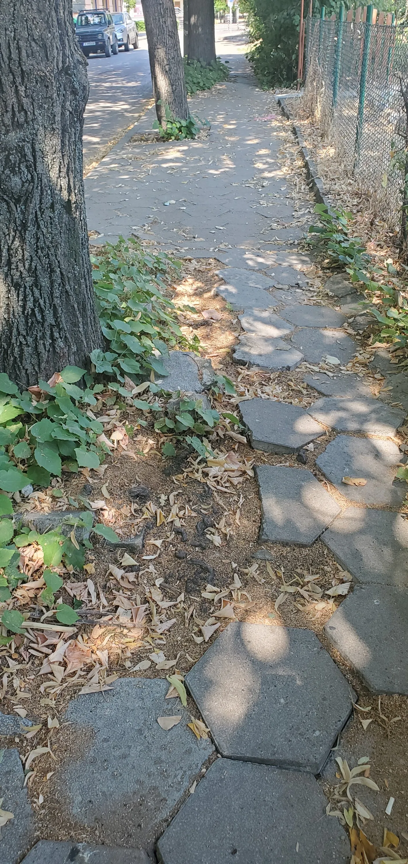 Един тротоар, на който единствено името му е такова. Напълно негоден, а той води до медицински център, който всекидневно е посещаван от доста възрастни и мъчно преносими хора. Едната лента на шосето е заета от паркирани коли, а в другата, с цел да се разминат две, едната би трябвало да се върне обратно. А пешеходците, от къде да минат, с цел да отидат на обзор?