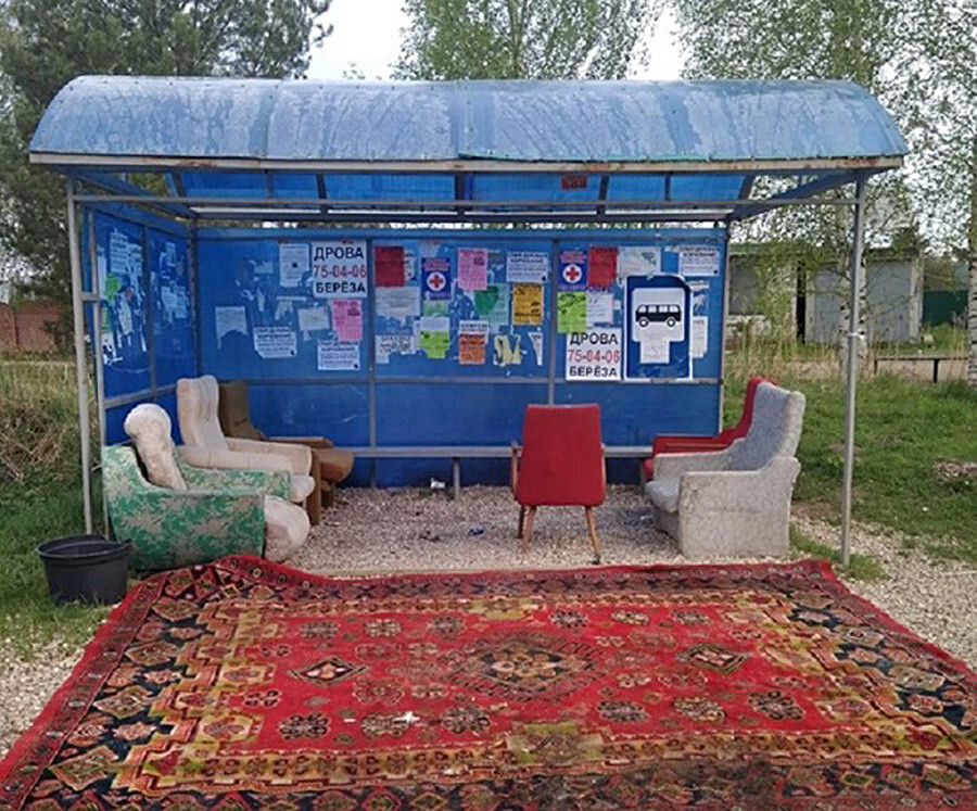 Край Твер виладжии са застлали с килим спирка, с цел да е топло и удобно в очакване на рейса за града.