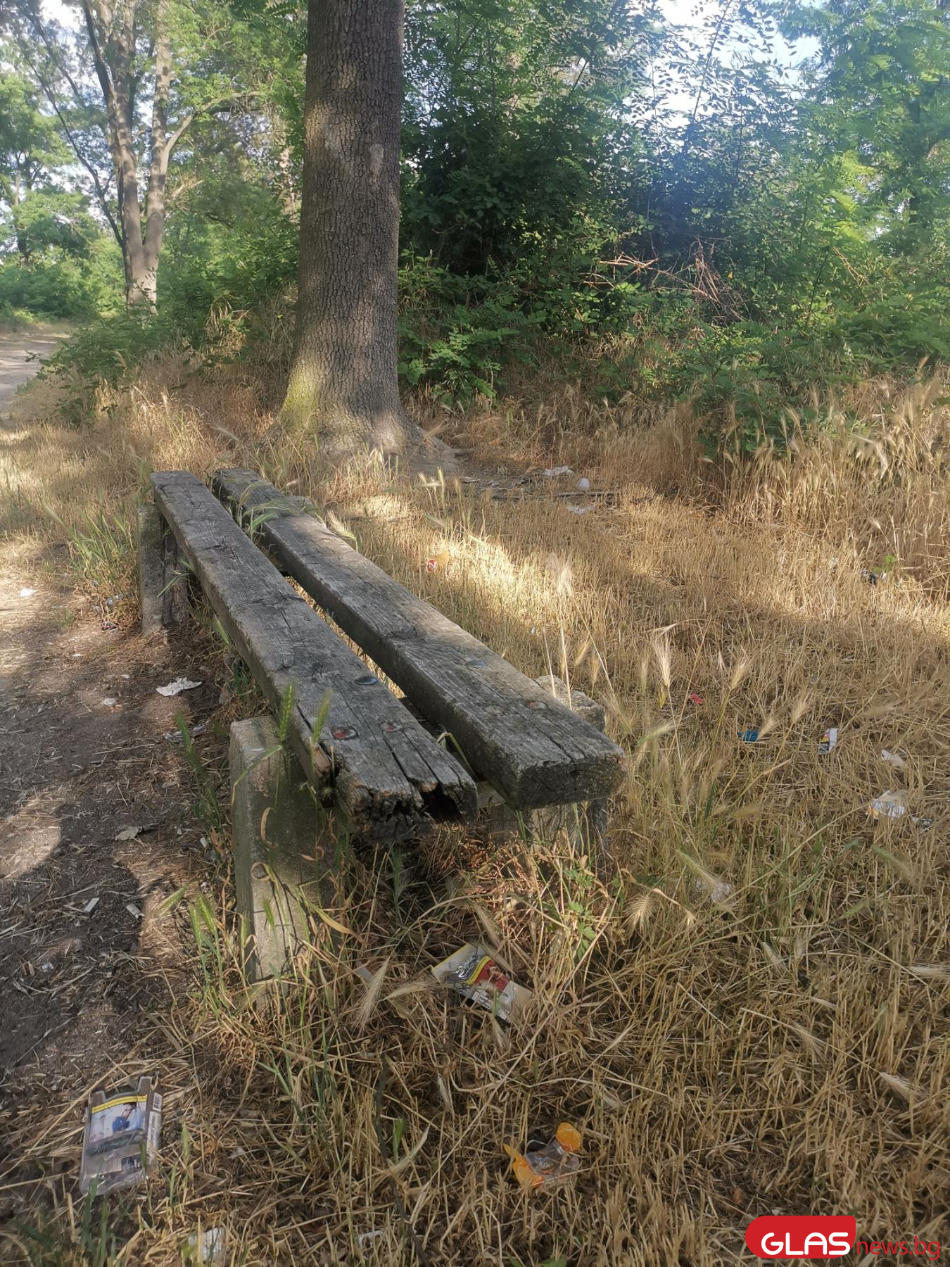 Това е единствената скамейка в парка. Както и сами виждате, тя е заобиколена от отпадъци.