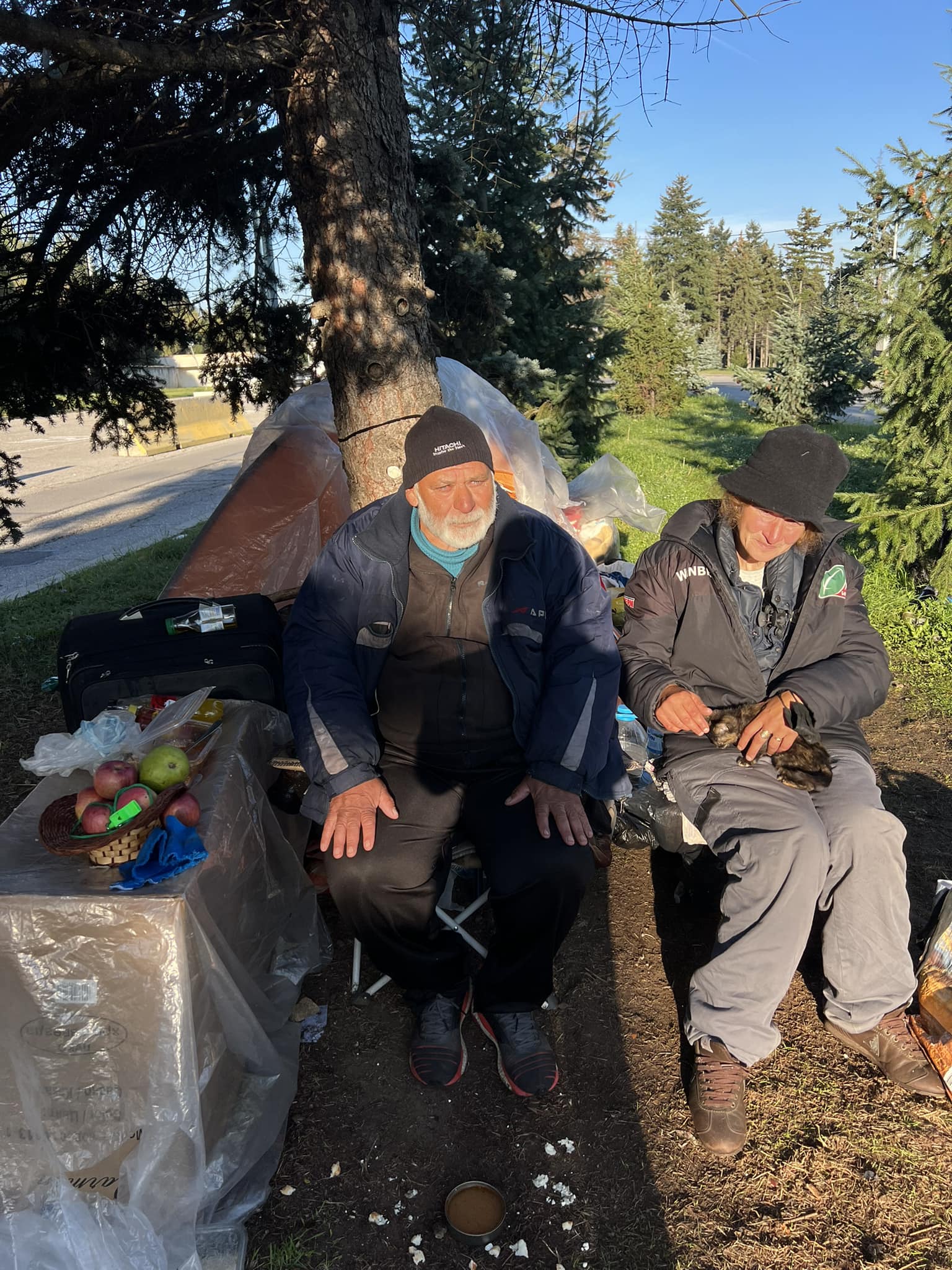 Мъжът и дамата са бездомни - от известно време живеят в палатка покрай входа на Национален исторически музей в столицата. Казват се Стефан и Магдалена. Жената е с умствена назадничавост, а неотдавна се случило по този начин, че й откраднали идентификационния документ за идентичност.