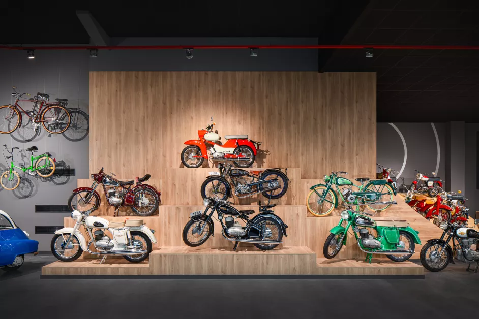 Колекцията включва над 70 типичен и ретро автомобила, мотоциклети и колела. Сред тях блестят неповторими модели като: