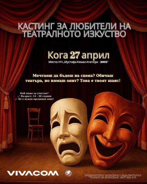 Кастингът ще се състои в НЧ „ Мустафа Кемал Ататюрк - 2003 “, на ул. „ Д-р Георги Вълкович “ 3 в Пловдив.
