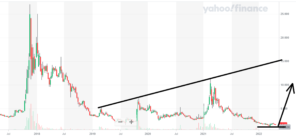Ако вярвате, че китайските компании няма да бъдат делистнати от щатския фондов пазар, за което вероятността е към 50%, след наскорошното положително развиване на обстановката в тази посока, и също по този начин вярвате, че рецесията с ковид в Китай ще бъде овладяна, както и че протичащото се в исторически проект ще се случва още веднъж (тоест в техническия анализ), то има една компания, която може да притегли погледа ви, поради съществуването на извънредно огромен прогресивен капацитет.Компанията е - Xunlei Limited (XNET). Компанията е дребна бързоразвиваща се компания от бранша на телекомуникационните услуги, профилирана в облачните технологии и даване на услуги за цифрови цифрови активи. Бързоразвиваща се, тъй като през последното тримесечие, приходите й са се повишили с 41.3% на годишна база до 238.8 милиона $, или 3.57 $ на акция. Забележете, че пазарната й капитализация е едвам 112.6 милиона $ по цена на затваряне през вчерашния ден, или 1.54 $ за акция.Определено има съществени фактори, които поддържат тезата, че акциите й могат да изригнат, в случай че не бъдат делистнати от щатския фондов пазар, където се търгуват сега. Между другото, точно тези страхове са и в основата на това, книжата на компанията да са поевтинели с над 70% през последната една година, макар положителния пиедестал.Две обаче, са по-интересните неща свързани с тази китайска компания. Първото е, че тя разполага с кеш в размер на 239 милиона $, или 3.54 $ на акция и дълг от едвам 20.2 милиона $. И второто – напълно неотдавна, бордът на шефовете одобри назад изкупуване на акции в размер на до 20 милиона $, което на процедура, въз основа на пазарната оценка на компанията е към 20% от компанията.Освен, че се отличава и с висока бета – 1.5 и незаслужено поевтиняване в акциите, поради външни фактори, като евентуална заплаха от делистване, книжата на компанията са покрай най-ниските си в историята равнища, които бяха реализирани напълно скоро – при 1.12 $ за актция. Поглеждайки към графиката, виждаме много добра техническа картина. На първо място – едно извънредно място за слагане на стоп за ограничение на загубите – при дъното от 1.12, което е на към 25% от настоящата цена. Второ – една групировка в техническия разбор известна с името „ по-високи върхове “, която в случай че се материализира, би следвало да води акциите на компанията до равнища от най-малко над 10 $ за акция, освен това релативно бързо, в случай че се материализира случвалият се в предишното растеж при книжата на компанията.