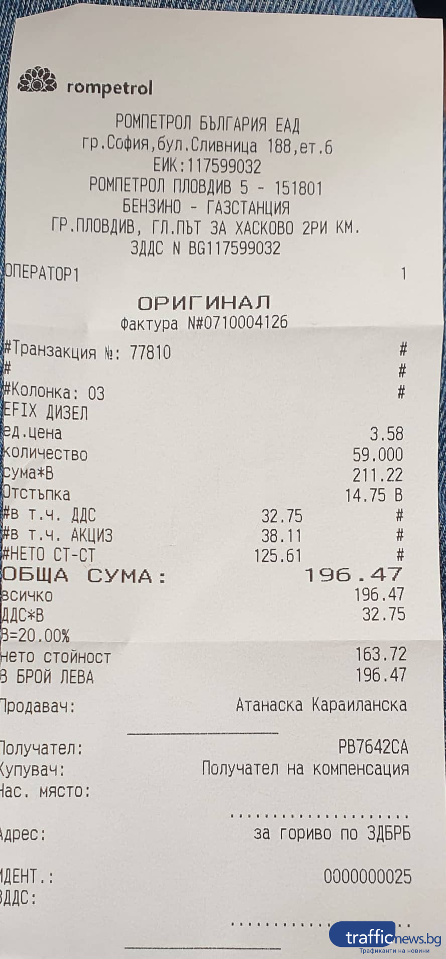 За горивото с отстъпка, бензиностанцията издава уголемен фискален бон, в който ще са вписани регистрационния номер на транспортното средство, тип и количество на зареденото гориво, както и отстъпката от 25 ст. на литър.