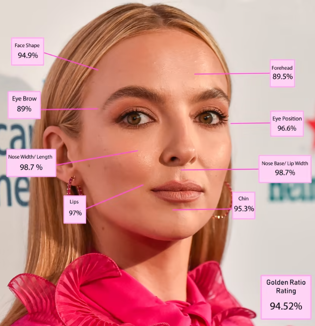 Пластичният хирург Джулиан Де Силва мери пропорциите на лицата на звездите благодарение на златното сечение Phi, прави оценка хубостта им и прави ранглиста. По време на разбора се оказа, че чертите на лицето на Джоди Комър дават отговор на идеалните параметри с 94,52%.