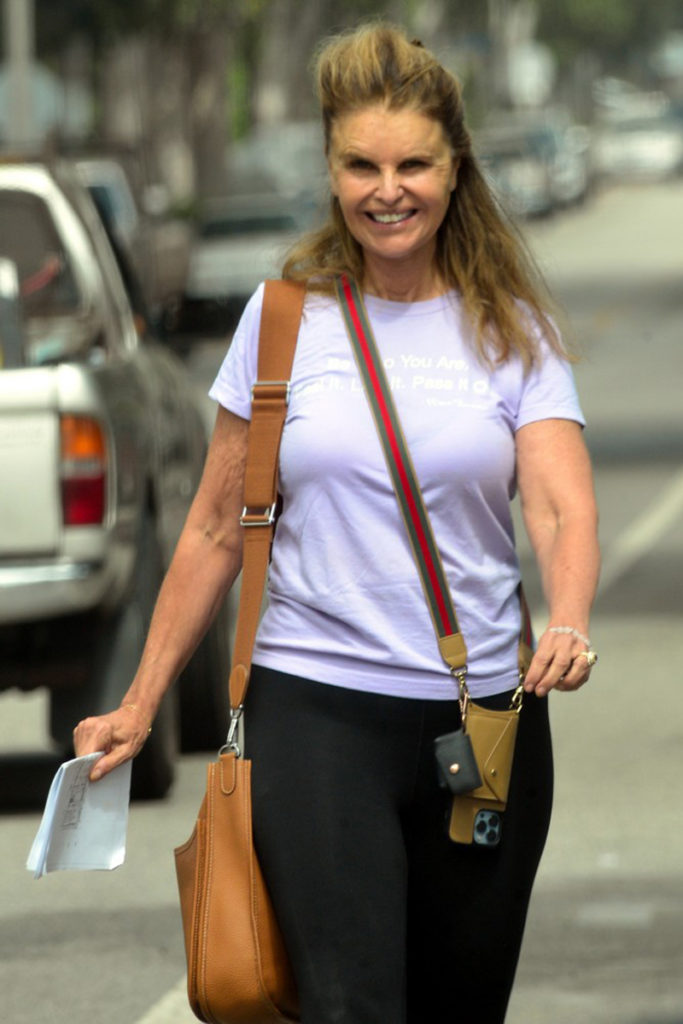 Според Daily Mail външният вид на 66-годишния Шрайвър е бил сметнат за плашещ от читателите. Снимките са направени, когато дамата се разхожда из Лос Анджелис, облечена единствено по тениска и чеп.