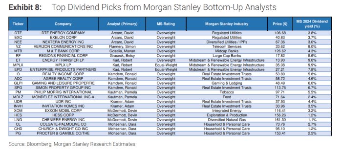 Акциите с непрекъснат опит в растежа на дивидентите биха могли да бъдат по-добър избор от техните високодоходни сътрудници, съгласно Morgan Stanley.Акциите, които поредно са увеличавали дивидентите си в продължение на 25 години, се показват непрекъснато над S&P 500 от години, пишат анализатори от Morgan Stanley в записка от сряда.Акциите, които изплащат дивиденти, също се показват по-добре от съперниците си, които не изплащат дивиденти, във всички браншове с огромна капитализация от 2000 година насам, като се изключи потребителския дискреционен бранш, съгласно анализаторите. Превъзходството на производителите на дивиденти е по-малко значимо при акциите с дребна капитализация.Въпреки че високодоходните акции може да са привлекателни в кратковременен проект, те са склонни да бъдат по-волатилни в средносрочен до дълготраен проект и оферират междинна възвръщаемост, съгласно анализаторите.Междувременно настоящата макроикономическа среда, която се характеризира с нараснала, само че намаляваща инфлация, нормално поддържа по-доброто показване на акциите, изплащащи дивиденти, означават анализаторите. Morgan Stanley счита, че инфлацията ще продължи да пада от високи равнища през идващите месеци, съгласно бележката.Анализаторите на Morgan Stanley също подчертаха няколко акции, които биха изглеждали привлекателни след три до пет години от позиция на дял, както е показано в таблицата по-долу: