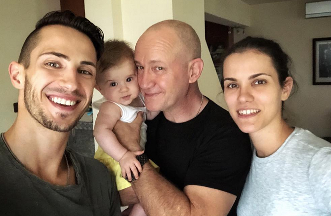 Шопов-старши с двете си деца, които са от разнообразни дами, и първото си внуче
