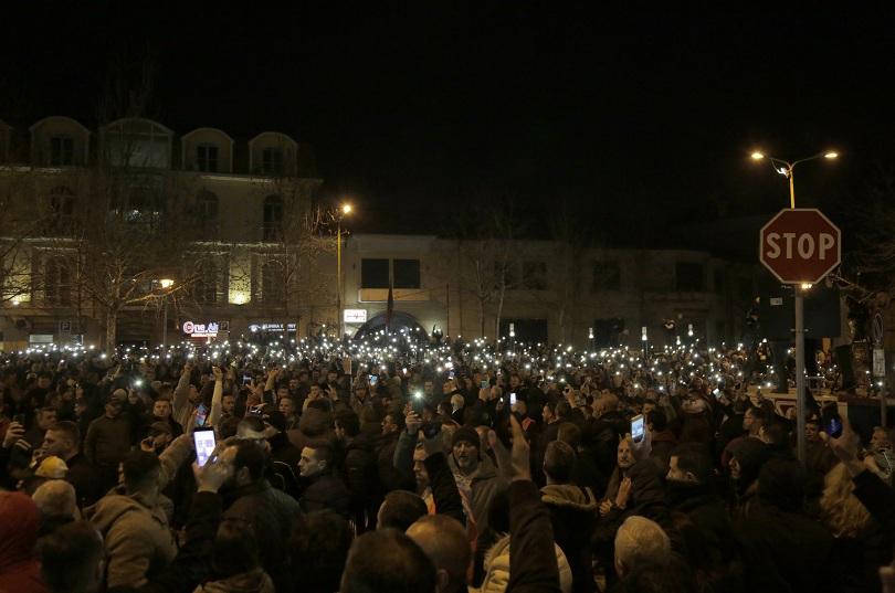 Албанската полиция употребява сълзотворен газ, с цел да разпръсне протестиращи, които се пробвали да нахлуят в Народното събрание.