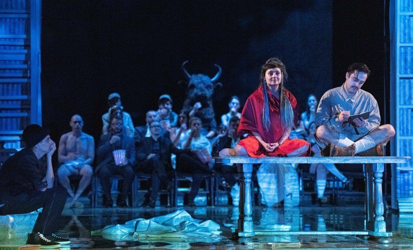 Ованес Торосян влиза в ролята на корифей на хора и оркестъра, като вкарва фена в действието. А Йоана Кирчева е делфийският пророк.