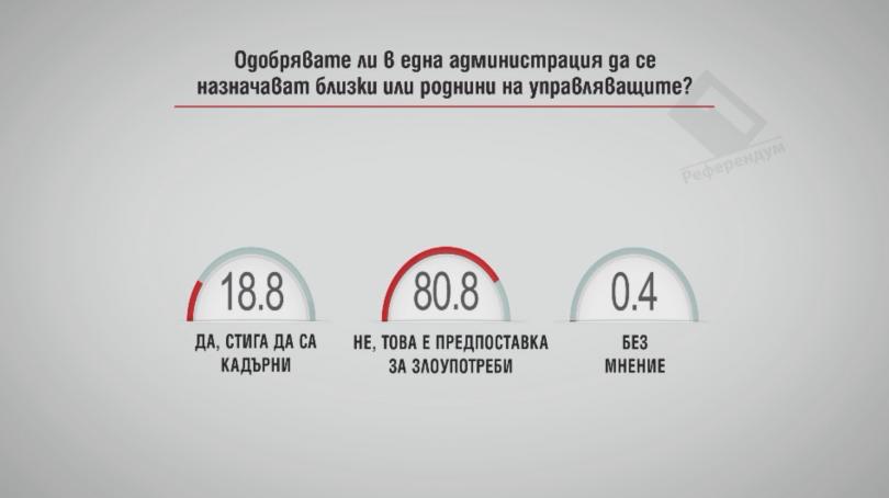 Почти 81% от хората споделят, че е причина за корист да се назначават близки или родственици в администрацията.