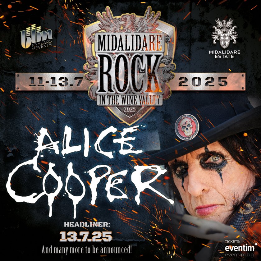 Алис Купър е третият хедлайнер на Midalidare Rock In The Wine Valley 2025, завършвайки американския образ на фестивала следващата година. Рок легендата се причислява към сънародниците си от MANOWAR и W.A.S.P. и ще закрие фестивала на 13 юли, неделя.