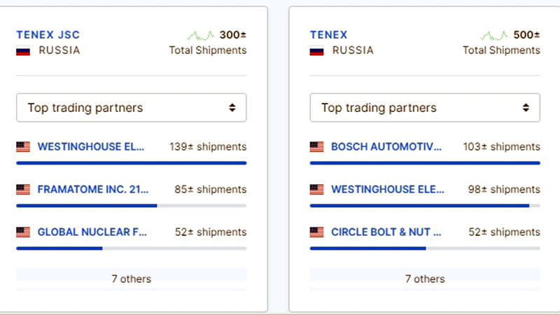 Според ImportGenius през ноември „ Уестингхаус “ е получила повече от 40 тона уранов хексафлуорид, който се употребява за произвеждане на гориво за атомни електроцентрали. Русия не е главен производител на уран, само че заема повече от една трета от международния пазар за неговото превръщане и обогатяване. Доставките от Русия обезпечават до 20% от търсенето на американски атомни електроцентрали.