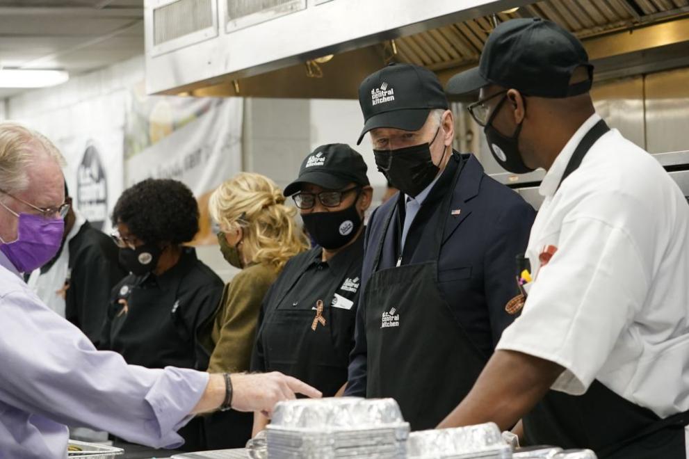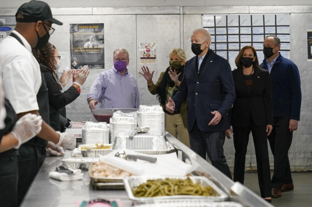 Байдън и съпругата му приготвиха обяд за Деня на благодарността в кухня за бедни