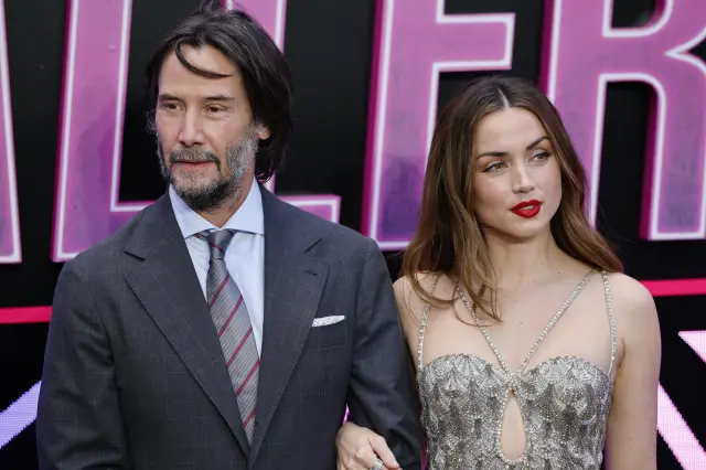На събитието, провело се в сърцето на Лондон – Лестър Скуеър, 37-годишната кубинска актриса беше в компанията на не по-малко известния си сътрудник Киану Рийвс . Двамата позираха за медиите преди премиерата, като Ана притегли всички погледи с ослепителна сребриста рокля с изрязано деколте, а Киану остана правилен на стила си – грациозен тъмносив костюм от туид, смесен с синя риза и вратовръзка на райе.