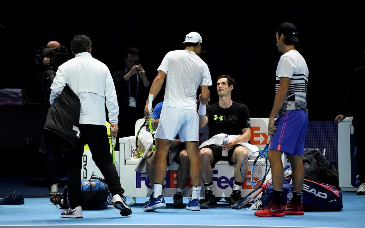 Мъри се засече и със своя другар Рафаел Надал, който тренира на същия корт след него. Испанецът организира занятие с най-младия участник в Лондон Александър Зверев. Треньор на германеца е сънародника на Рафа Хуан Карлос Фереро. Така за тренировката на едно място се събраха тримата испанци, достигали до номер 1 в света - Надал, Фереро и Карлос Моя, който е част от щаба на Рафа. До тях беше и най-успешният треньор в историята на тениса Тони Надал, за който това ще е последният шампионат, на който ще бъде дружно с племенника си.