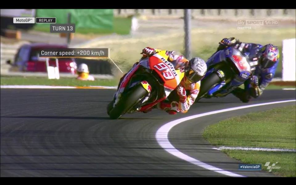 That was close @polespargaro runs @marcmarquez93 high and wide!#ValenciaGP pic.twitter.com/pW0wVxHYfy