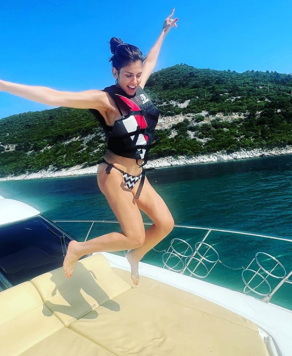 Публикувано от нея селфи на мъжка и женска ръка, сгънати в сърце, подсказва красноречиво, че Анелия е дружно с обичания си. Актуалната изпълнителка театралничи от яхта, облечена в бански костюм и без грим, само че със наложителната избавителна жилетка.