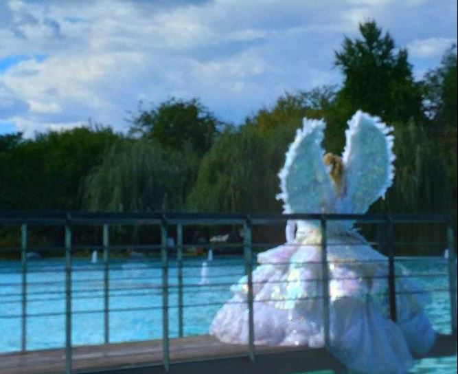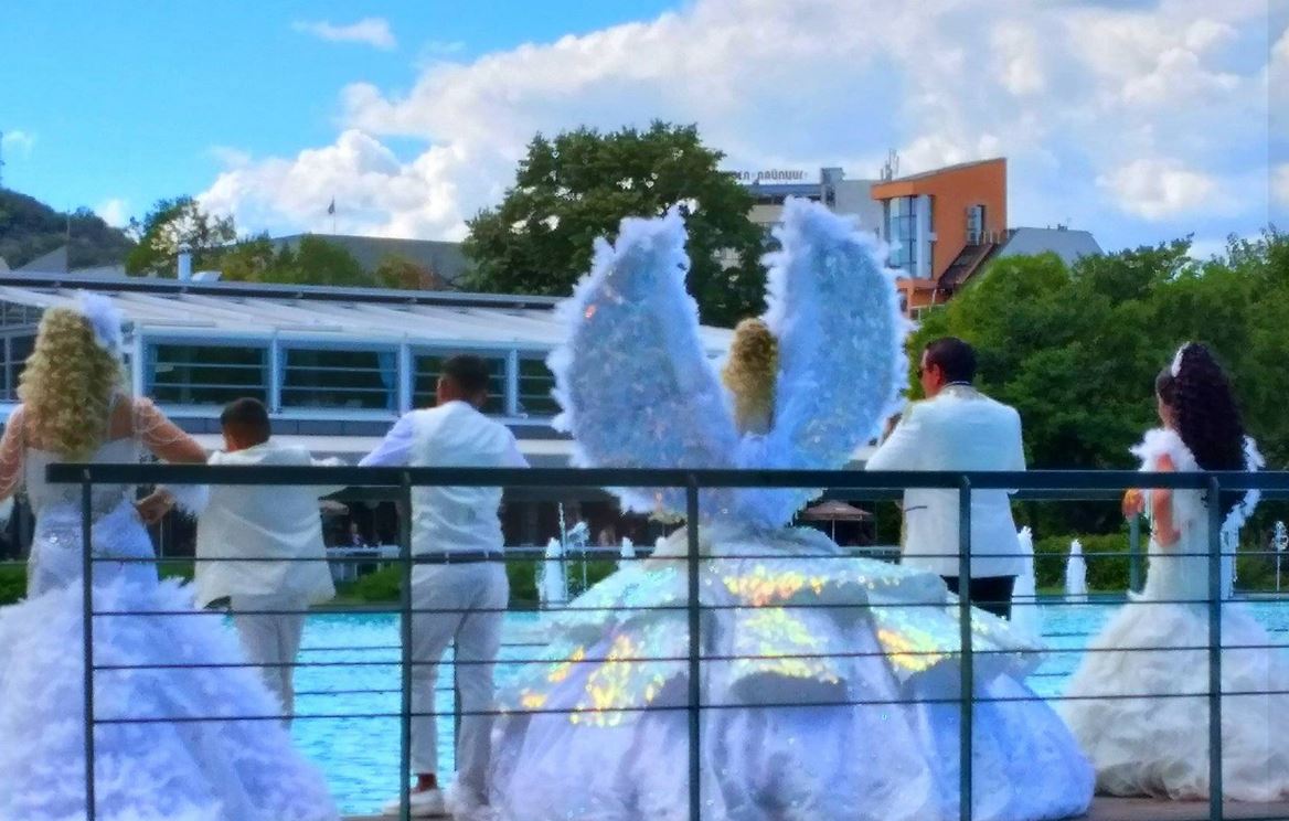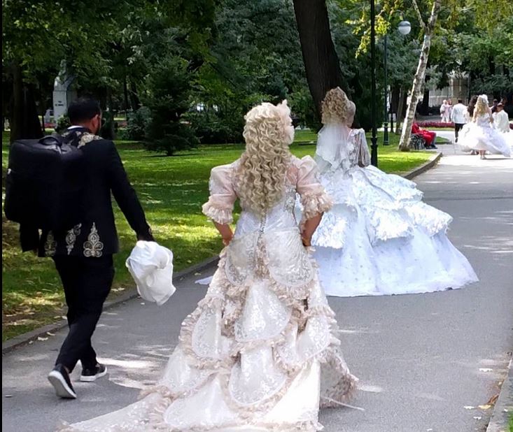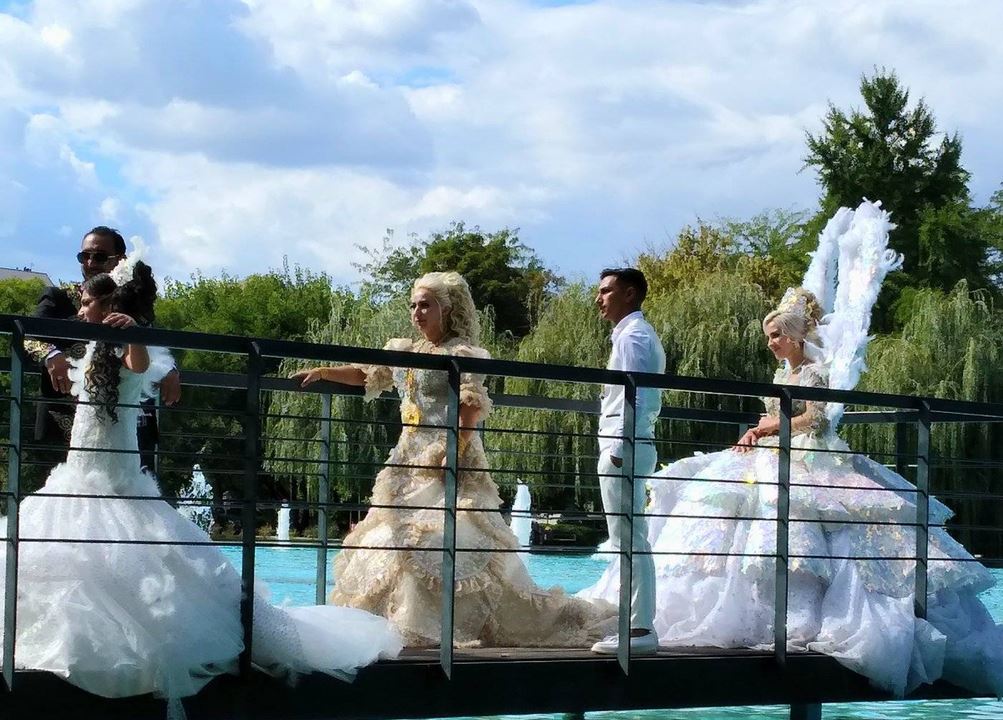 Ангелски крила, обилни бели рокли, гарнирани с блестящи украси са единствено част от тоалетите на дамите.