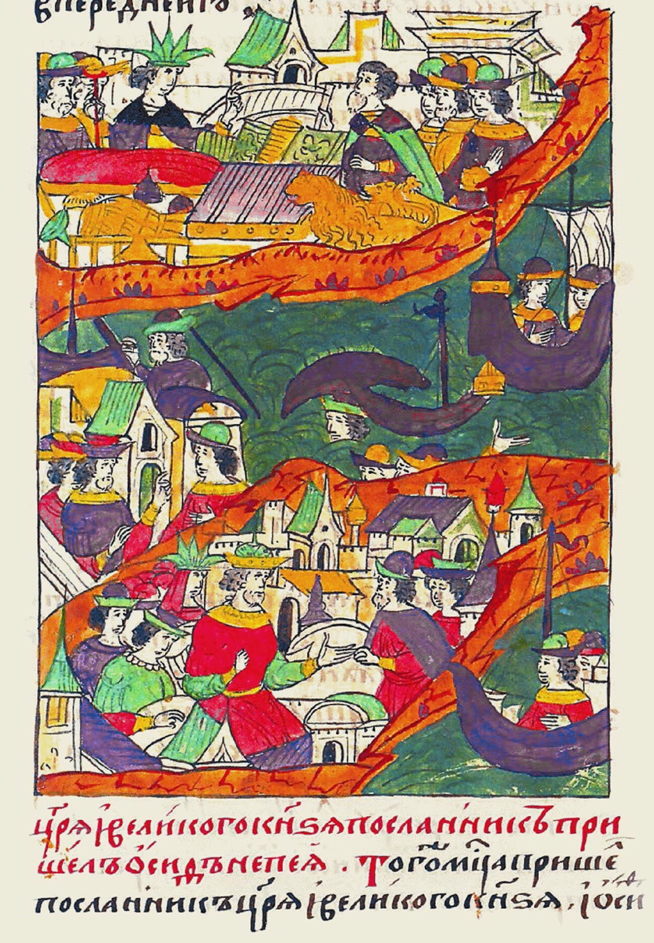 Цар Иван IV приветства задграничните посетители. Далечната Англия провокира огромен интерес у него както като търговски сътрудник, по този начин и като вероятен политически съдружник. В резултат на това тя се трансформира в първата западноевропейска мощ, с която Русия има опция да откри мощно икономическо съдействие.