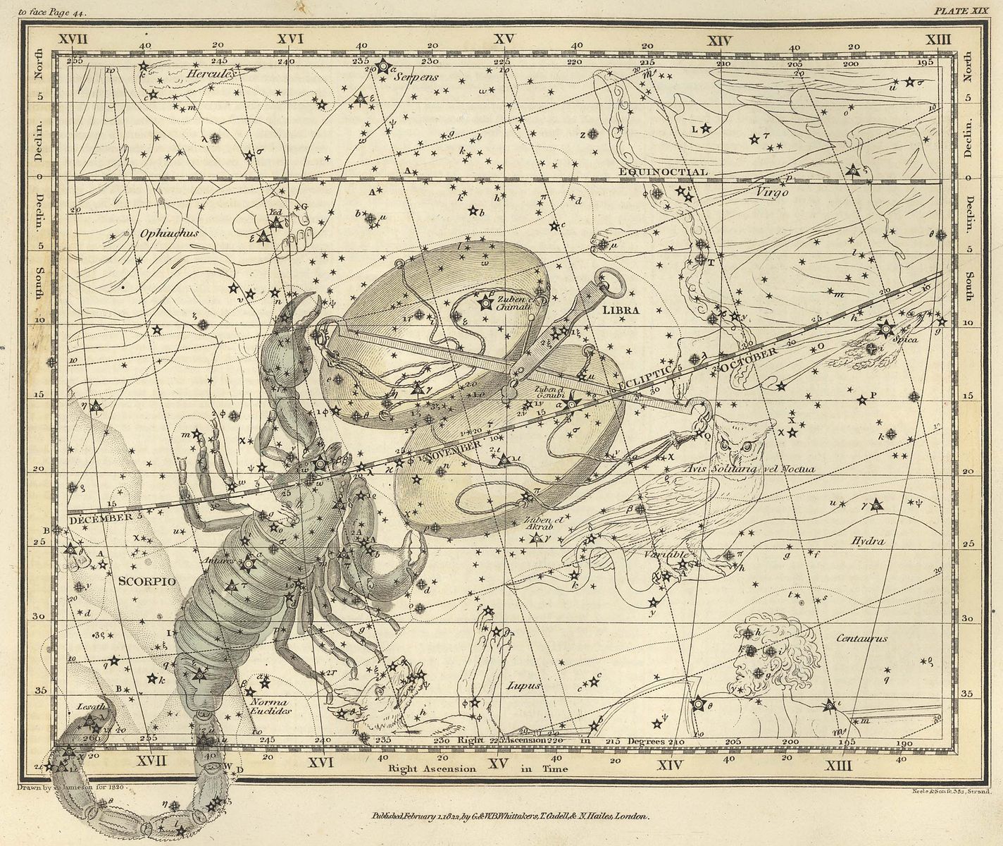 Изображение: Scorpio and Libra, Antique map - Alexander Jamieson Celestial Atlas-Plate, 1822 - commons.wikimedia.org