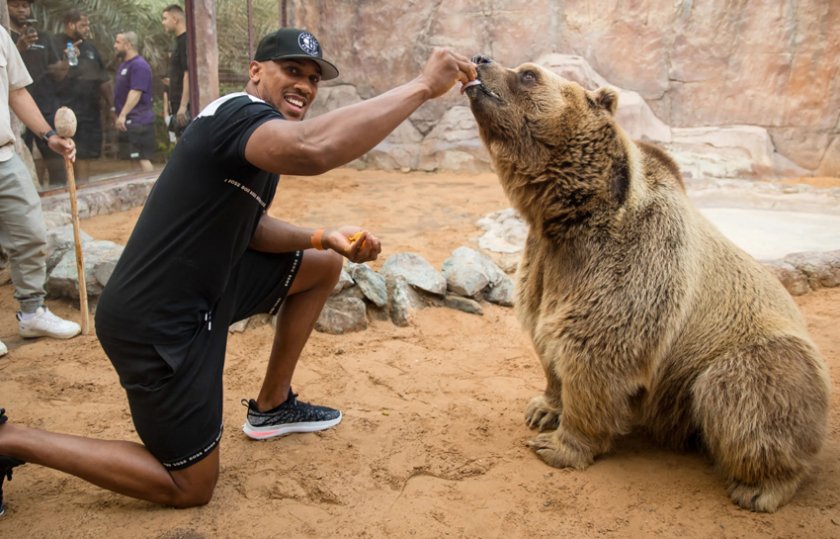 Антъни Джошуа се бори с рядко животно в играта на дърпане на въже и загуби. Това се случи по време на посещаване на боксьора в екзотична зоологическа градина в Дубай.