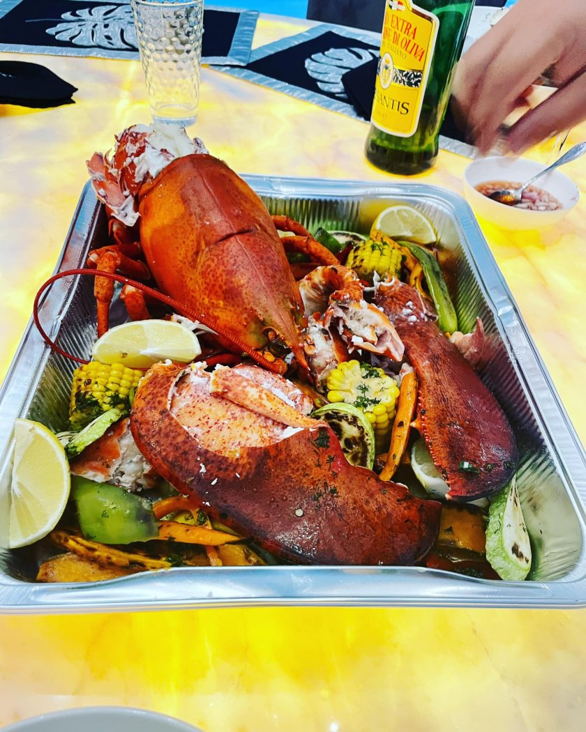 " Когато брачният партньор ти ти е сготвил за вечеря “лобстер по хайдушки”… и сервира върху светещата ни трапезарна маса от оникс за 10 индивида и запалени свещи у дома в бистър свещник…като един елементарен понеделник-безценно и много първокласно, само че най към този момент доста благо! " - написа перничанката под фрагментите с вечерята (б.а. правописът е запазен).
