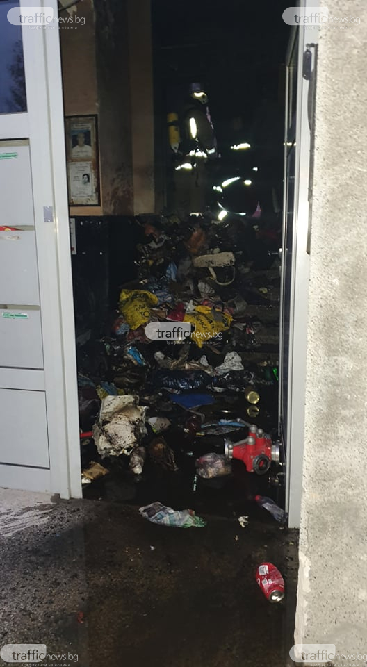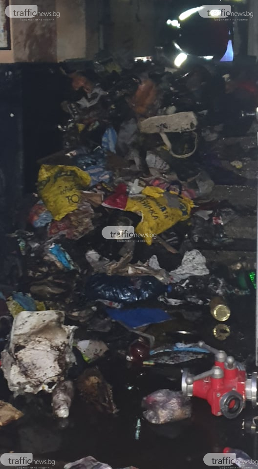Наш кореспондент видя, че и към този миг пожарникари обливат с вода трупаните с години отпадъци и вадят част от тях на стълбището.