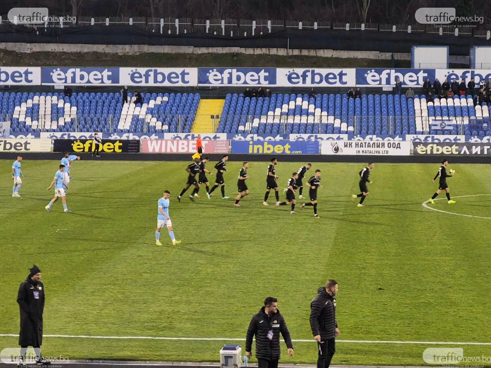 В 32-та минута Емил Стоев имаше много добра опция да вкара, само че ударът му беше избит от Господинов.