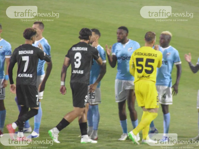 Гостите получиха цели два червени картона още до края на полувремето, откакто първо в 34-та минута Дивайн Ноа беше изпъден с пряк червен картон, а Темур Кхогадзе също беше изпъден след втори жълт картон и по този начин тимът остана с 9 души.