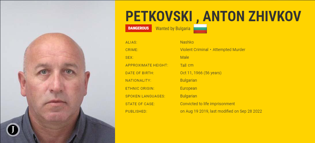 Освен от " Европол ", Антон се търси като изключително рисков палач и от " Интерпол " с алена бюлетина.