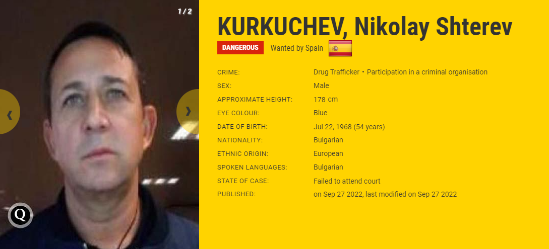 Българинът Николай Куркучев е един от 10-те най-издирвани нарушители в Испания. 54-годишният мъж се търси като водач на интернационална група за трафик на опиати от Южна Америка до Европа. Именно поради това страната, където е упрекнат и съден, и по чието искане се търси е Испания.