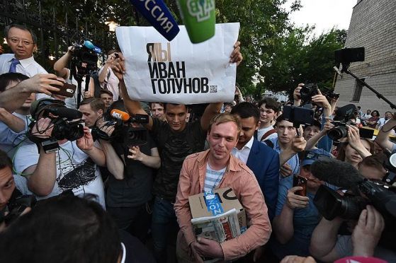 Полицаите принуждават тениските с въпросния надпис да бъдат съблечени, или хората в тях да изоставен демонстрацията, твърди специалистът от Амнести Интернешънъл Олег Козловский. „ Новая газета “ заяви в Туитър за напън върху журналиста Иля Азар. Полицейски чиновник му прочел разпореждане за недопустимост на неразрешената акция. В кафене, където раздават тениски с надписа в поддръжка на Голунов, са нахълтали униформени и поискали персоналните документи на всички.