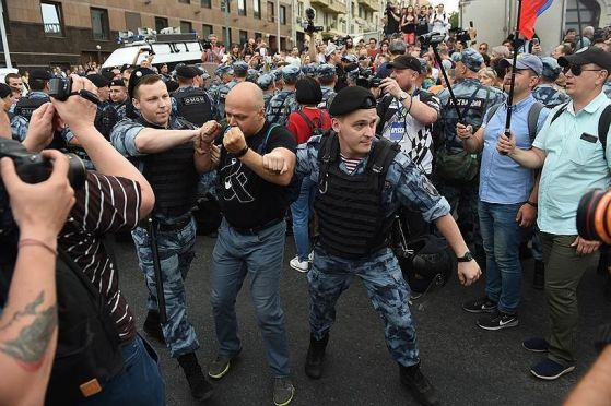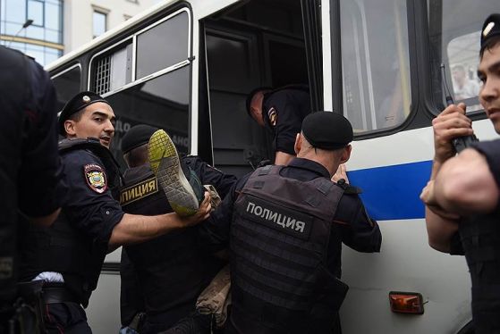 Арестите на участници в протестното шествие в Москва в поддръжка на проверяващия публицист Иван Голунов започнаха незабавно след старта му в 12,20 ч. /московско време/, над 200 души към този момент са отведени в следствието, оповестява интернет-изданието „ ОВД-инфо “.