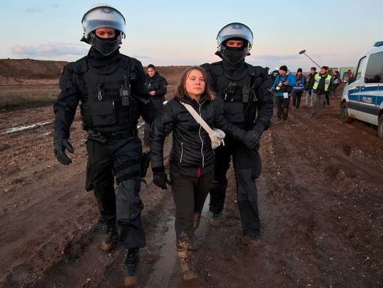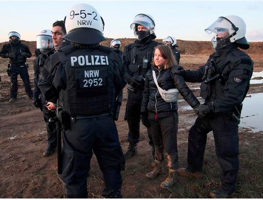 Само преди няколко дни Грета Тунберг упрекна полицията в Германия в принуждение против екоактивистите, които стачкуват против поглъщането на изоставено село от открита въглищна мина, съобщи Reuters.