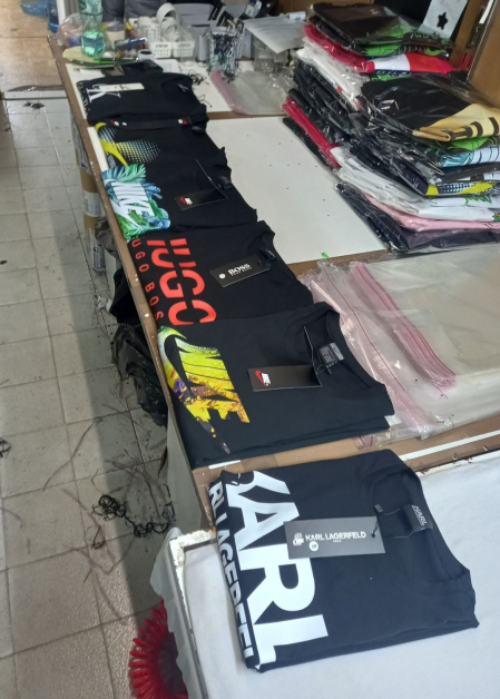 При претършуване в обекта и на адреса на притежателя на комерсиалното сдружение общо са открити и конфискувани 218 продукта – тениски и спортни облекла, както и заготовки на стикери, щампи и етикети с надписи на известни производители на спортни артикули.