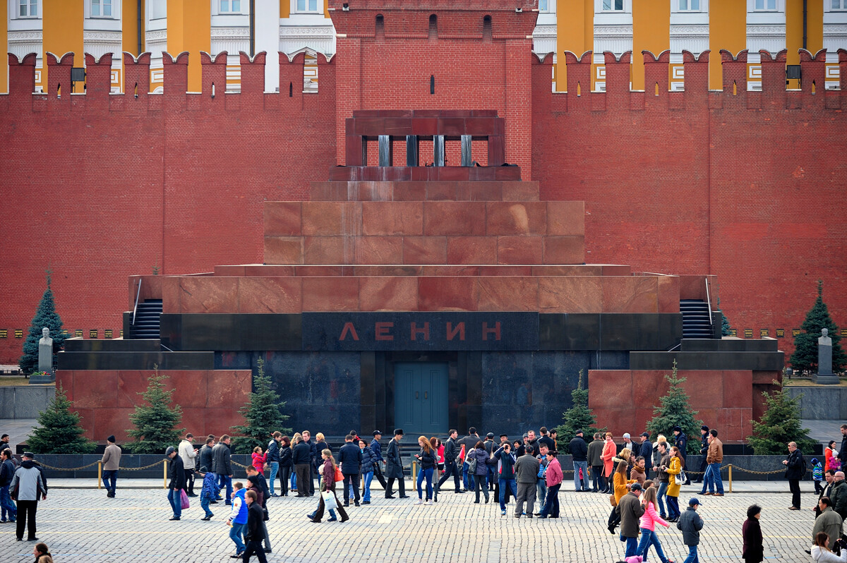 След революцията Алексей Шчусев е необикновено издирван: основава генералния проект за развиване на Москва, работи като основен проектант в предшественика на ВДНХ – Общоруската селскостопанска и занаятчийско-промишлена галерия. През 1924 година получава специфична поръчка – за три денонощия да издигне на Червения площад краткотраен дървен пантеон за гроба на Ленин. Постройката би трябвало да се впише в съществуващия отбор на Червения площад. На архитекта мигновено му хрумва решение: мавзолеят ще е относително невисок, със стъпаловидна форма и сбит надпис на фасадата „ Ленин “. През 1925 година Шчусев стартира да работи над плана за каменна гробница – от червен гранит, порфир, сив и черен лабрадорит. Той го проектира по този начин, че потокът от хора да се движи непрестанно, без да се основават скупчвания и блъсканици: посетителите влизат в мавзолея по стълба вдясно, като обикалят в кръг саркофага с тялото на Ленин и напущат мавзолея по стълба вляво. Самият проектант назовава този собствен план „ най-забележителното креативно прекарване в целия ми живот “.