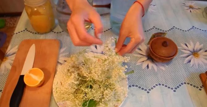 На първо място би трябвало да съберете съцветия на бъз. Препоръчваме да извършите това надалеч от пътя и града. За 3-литров буркан с напитка ще ви трябват 8-10 съцветия.