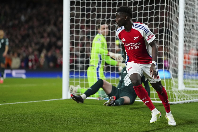 Очакваното се случи в 34-ата минута, когато Арсенал излезе напред в резултата, с помощта на Букайо Сака. Английското крило засече ниско центриране на Жезус, който въпреки всичко се регистрира с голово деяние.