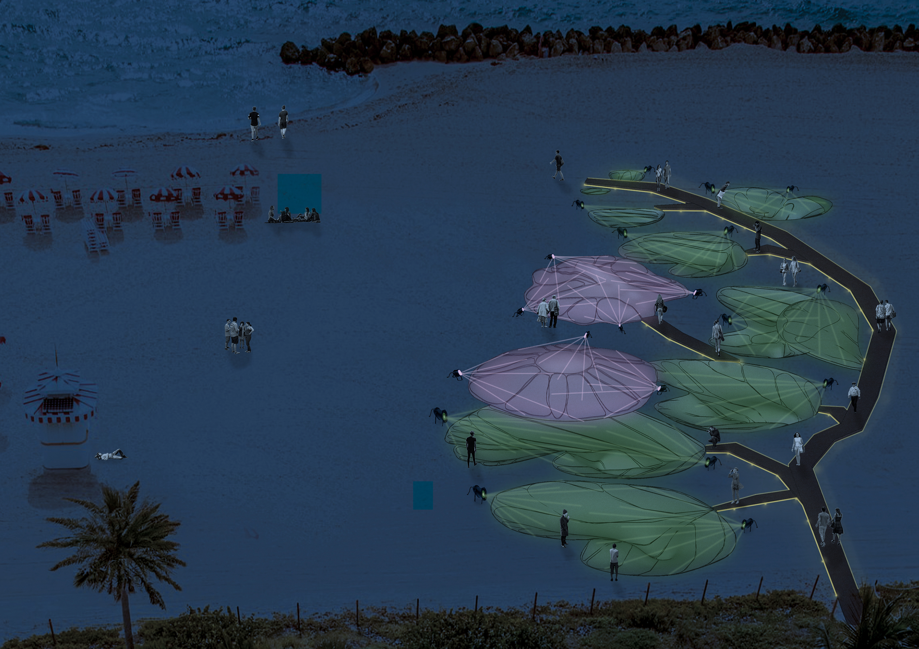 Съставен от дървени палуби, наподобяващи цветовете и листата на растението Morning Glory, Morning Glory на Faena Beach приканва към безпределно взаимоотношение и игра за всички. Взаимодействията, включващи благоприятни условия, включват допиране, игра, отмора, гледане, слушане и проучване на характерната за мястото апаратура, която е притежател на премията за изкуство " Фаена " за 2022 година През нощта, когато плажът е затворен за гости, Morning Glory ще бъде осветлен за напълно друго сетивно преживяване. Инсталацията, основана в съдействие с архитекта Висенте Доносо, е под формата на плажната утринна популярност - пътуваща вечнозелена лоза, която е съвсем на всички места по плажовете на Флорида, както и по целия свят, с помощта на плаващите си семена, устойчиви на морска вода.