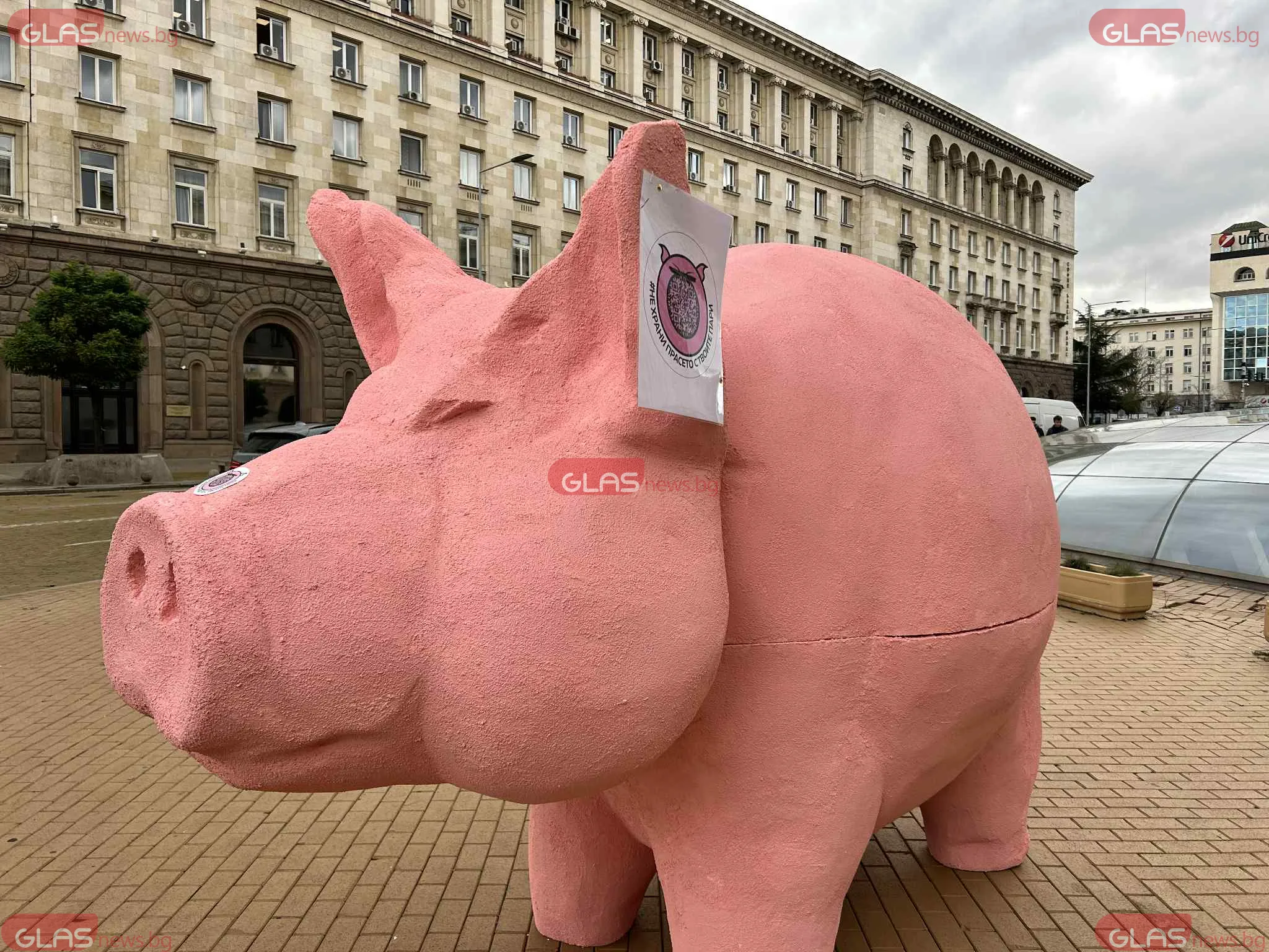 Прасе-касичка се появи пред парламента СНИМКИ