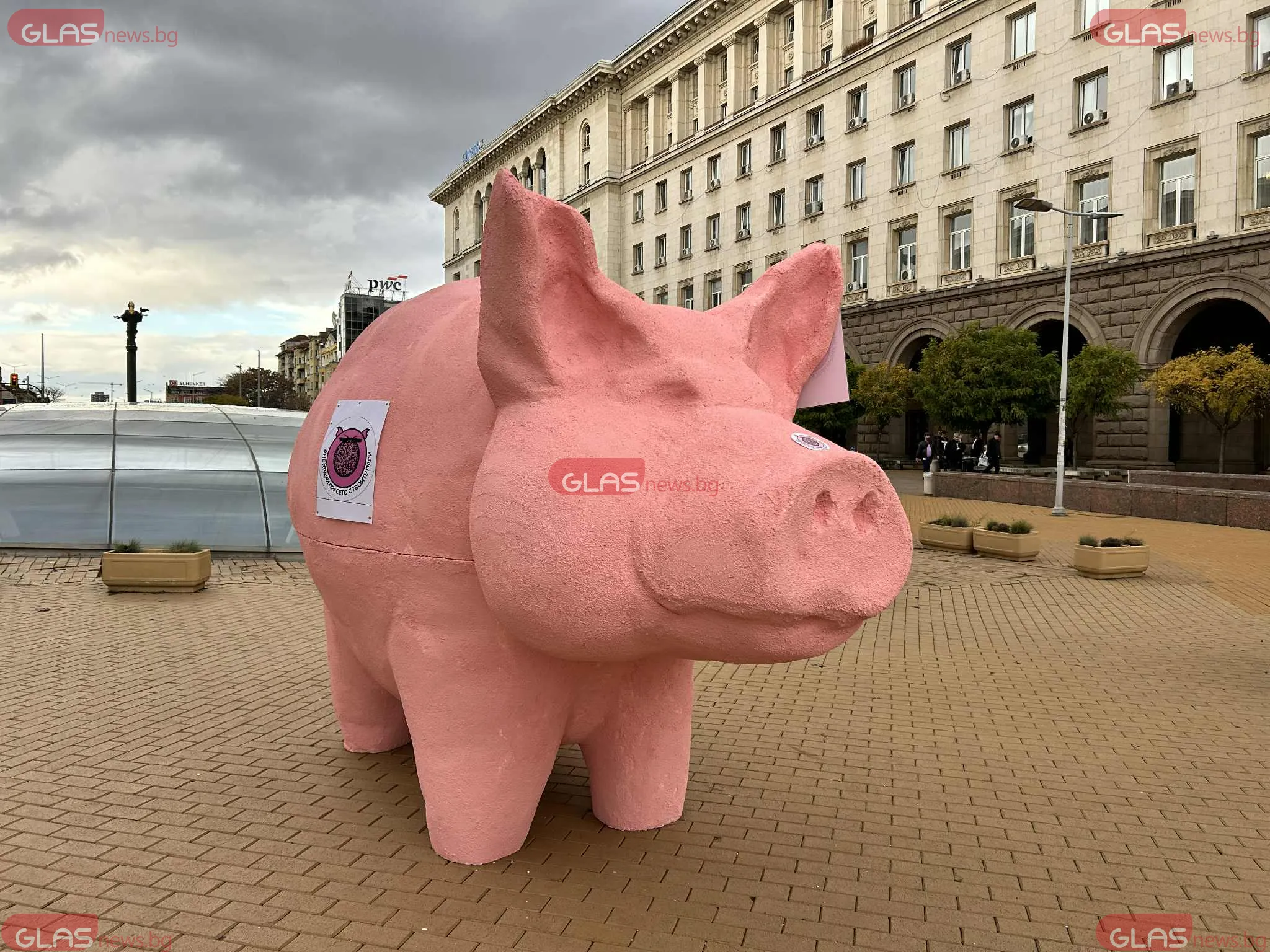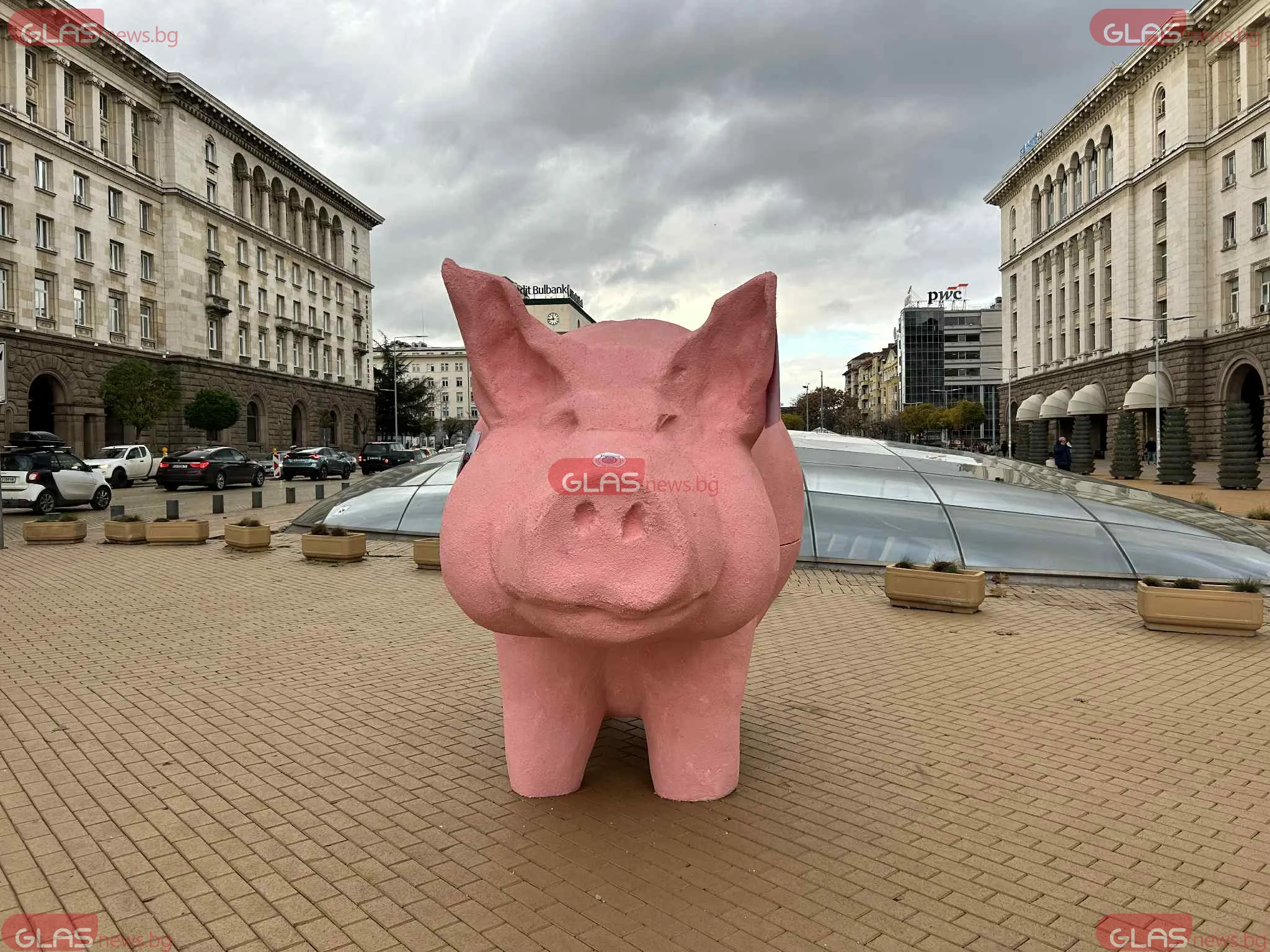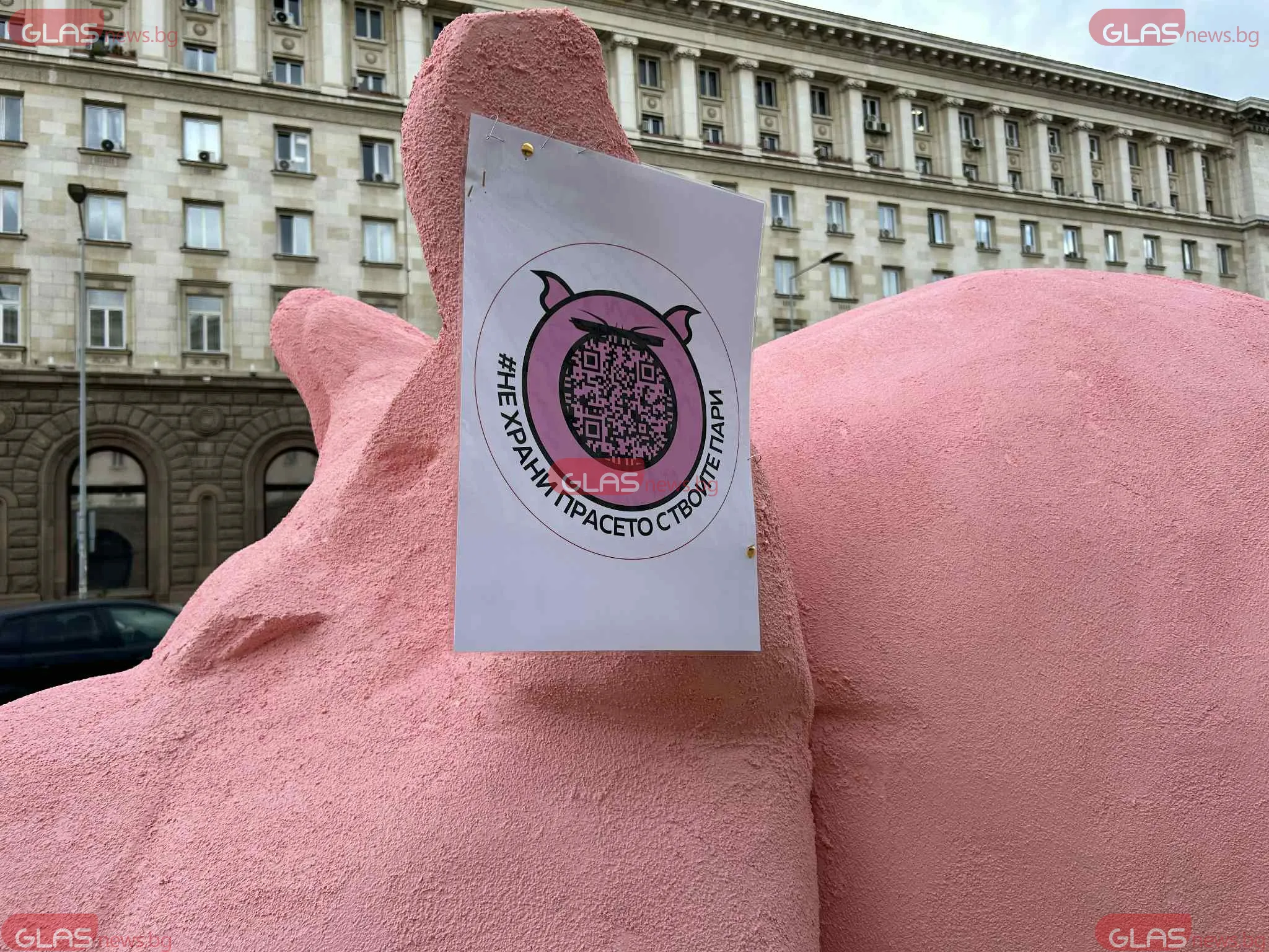 Арт апаратура на прасе-касичка се появи пред постройката на Народното събрание. Зад постановката стоят от " Продължаваме Промяната ", които по този метод са решили да изразят недоволството си от план-сметката за 2026 година