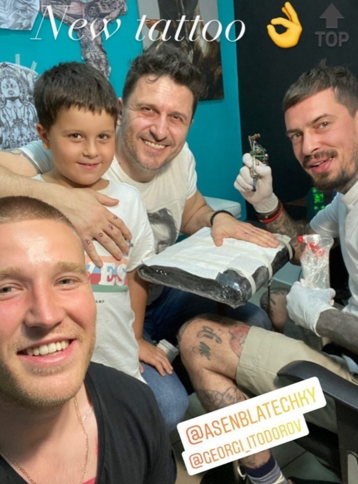 Асен Блатечки се снабди с нова татуировка – театралът кинаджия увековечи името на сина си Борил. То към този момент е изписано върху пръстите на дясната ръка на татко му. Снимка демонстрира, че сходен татус ще има и върху лявата ръка на известния актьор, само че към този момент не е ясно какво ще изобразява тя. Предполага се, че там ще е името на каката на Борил – студентката Катерина. Синът на Блатечки и Диляна Попова е не по-малко артистичен от родителите си и по тази причина очевидно се забавлява с целия този татус екшън.