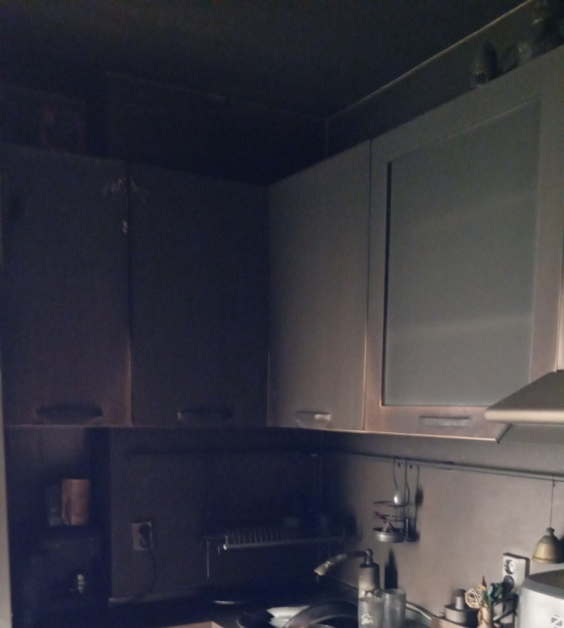 Огънят е породен от дефектирал удължител, намиращ се покрай дивана. За минути пожарът обгръща хола – диванът изгаря изцяло, климатикът и огромна част от покъщнината са унищожени. В целия апартамент се популяризират сажди и пушек. Унищожени са и облеклата на фамилията – останало е единствено това, което носят на гърба си.