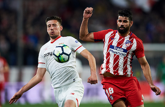 — OptaJose (@OptaJose) 25 февруари 2018 година През седмицата Севиля изигра доста тежък мач от осминафиналите на Шампионската лига, в който изпусна да победи Манчестър Юнайтед. Винченцо Монтела се надяваше тимът му да повтори представянето си и против Атлетико. Италианецът заложи в предни позиции на Луис Муриел, а Хоакин Корея, Франко Васкес и Пабло Сарабия действаха най-близо до колумбиеца. Евер Банега и Стеван Нзонзи бяха двамата халфове с по-дефанзивни функционалности.