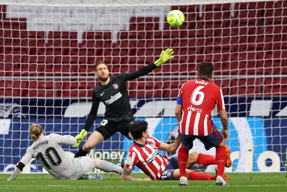 В първите минути Атлетико сложи гостите под напън, само че до Суарес не доближиха комфортни пасове в наказателното поле. Жоао Феликс се връщаше по-назад, с цел да оказва помощ при организирането на офанзивите, а най-активен беше Ферейра-Караско по левия фланг.